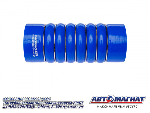 AM.4320Я3-1109220 (АМ) Патрубок охладителя наддув.воздуха УРАЛ дв.ЯМЗ 236НЕ2(L=240мм,d=90мм) силикон 873.10 ₽
