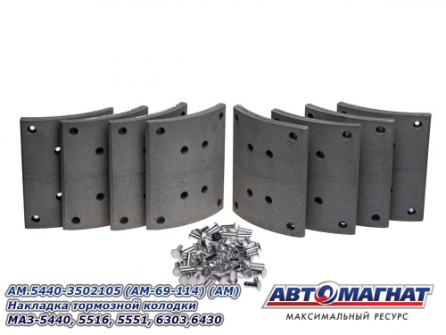AM.5440-3502105 (AM-69-114) (АМ) Накладка тормозной колодки МАЗ-5440, 5516, 5551, 6303,6430 2 597.46 ₽