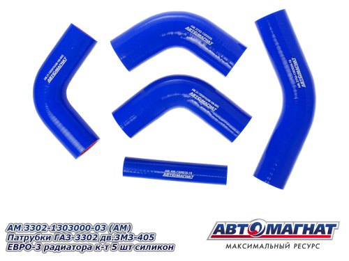 AM.3302-1303000-03 (АМ) Патрубки ГАЗ-3302 дв.ЗМЗ-405 ЕВРО-3 радиатора к-т 5 шт силикон 1 298.12 ₽