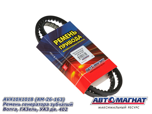 AVX10X1018 (АМ) Ремень генератора зубчатый Волга, ГАЗель, УАЗ дв.402 (10) 99.59 ₽