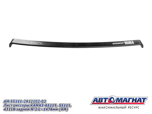 AM.55111-2912102-02 Лист рессоры КАМАЗ-65115, 55111, 43118 задней №2 L=1476мм (АМ) 5 492.81 ₽
