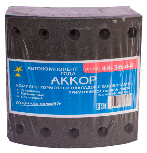 Накладка тормозная с заклепками (8 шт.) BPW, SAF 420*200 19094 (АККОР) 4 569.50 ₽