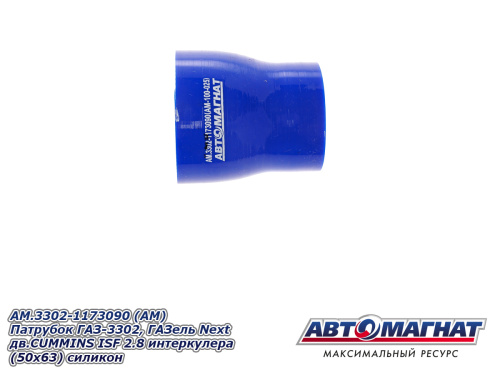 AM.3302-1173090 (АМ) Патрубок ГАЗ-3302, ГАЗель Next дв.CUMMINS ISF 2.8 интеркулера (50х63) силикон 180.86 ₽