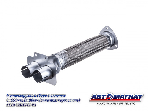 5320-1203012-03 (АМ) Металлорукав КАМАЗ в сборе в оплетке L=661мм, D=90мм (оплетка, нерж сталь) (8) 2 485.49 ₽
