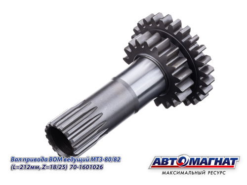 70-1601026 (АМ) Вал привода ВОМ ведущий МТЗ-80/82 (L=212мм, z=18/25) (KFJ-8903) 2 324.78 ₽