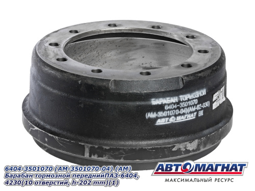 6404-3501070 (АМ-3501070-04) (АМ) Барабан тормозной переднийПАЗ-6404,4230(10 отверстий, h-202 mm)(1) 7 209.97 ₽