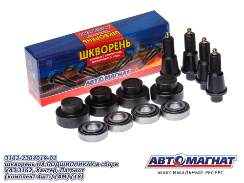 3162-2304019-01 Шкворень НА ПОДШИПНИКАХ в сборе УАЗ 3162, Хантер, Патриот (комплект 4шт.) (АМ) (18) 1 819.27 ₽