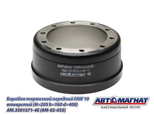 AM.3501571-4E (AM-02-055) (АМ) Барабан тормозной передний FAW 10 отверстий (H=205 h=160 d=400) (1) 7 667.75 ₽