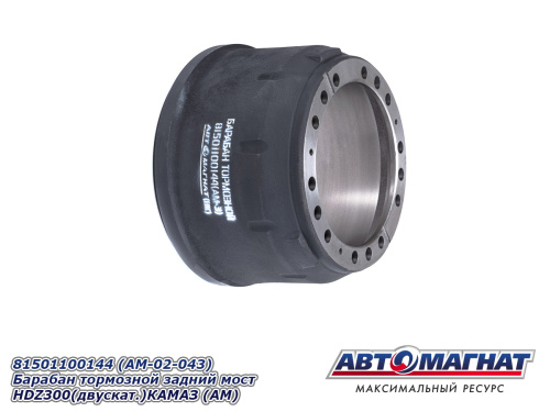 81501100144 (AM-02-043) (АМ) Барабан тормозной задний мост HDZ300(двускат.)КАМАЗ 6580/65801/65802(1) 9 537 ₽