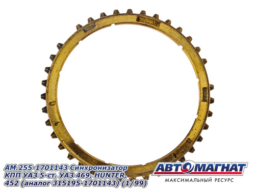 AM.255-1701143 Синхронизатор КПП УАЗ 5-ст. УАЗ 469, HUNTER, 452 (аналог 315195-1701143) (1/99) 345.58 ₽