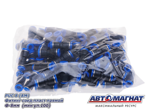 PUC 8 (АМ) Фитинг соед.пласт прямой Ф-8мм (мин уп.100) 23.12 ₽