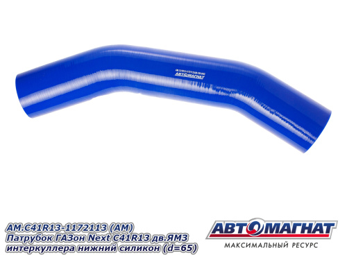 AM.С41R13-1172113 (АМ) Патрубок ГАЗон Next C41R13 дв.ЯМЗ интеркуллера нижний силикон (d=65) 1 091.38 ₽