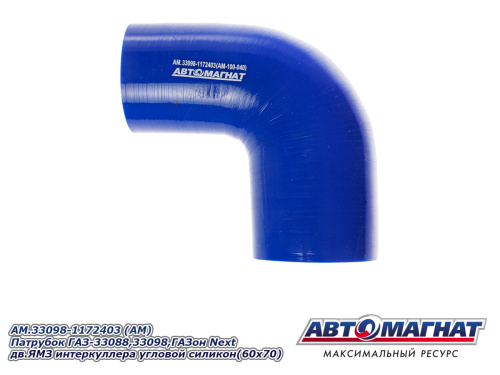 AM.33098-1172403 (АМ) Патрубок ГАЗ-33088,33098,ГАЗон Next дв.ЯМЗ интеркуллера угловой силикон(60x70) 483.32 ₽