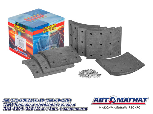 AM.231-3002110-10 (AM-69-128) (АМ) Накладка тормозной колодки ПАЗ-3204, 320412,к-т 8шт. с заклепками 2 219.09 ₽