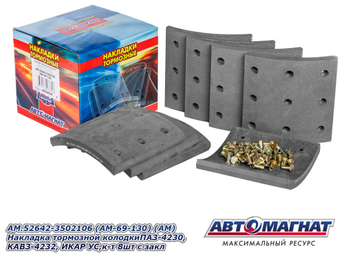 AM.52642-3502106 (AM-69-130) (АM) Накладка тормозной колодкиПАЗ-4230,КАВЗ-4232,ИКАРУС,к-т 8шт с закл 2 185.58 ₽
