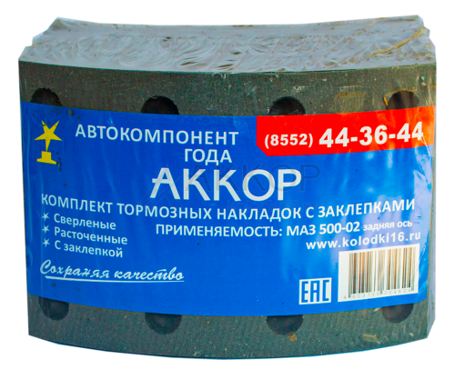 Накладка тормозная с заклепками (8 шт.) 500-3502105 задняя (500-3502105-02) (АККОР) 4 075.50 ₽