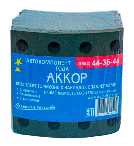 Накладка тормозная с заклепками (8 шт.=4 дл.+4 кор.) 53229-3501105 (АККОР) 2 844.25 ₽