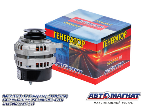 9402.3701-17 Генератор (14В/90А) ГАЗель Бизнес, УАЗ дв.УМЗ-4216 14B/90А(АМ) (4) 6 388.67 ₽