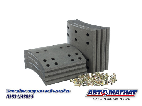 A3834/A3835 (AM-69-108) (АМ) Накладка тормозной колодки полуприцепа СЗАП ось L1 12т сверленая, 8 шт 2 552.62 ₽