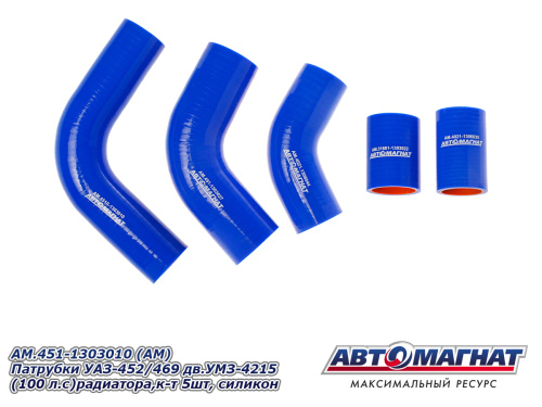 AM.451-1303010 (АМ) Патрубки УАЗ-452/469 дв.УМЗ-4215 (100 л.с)радиатора,к-т 5шт, силикон 1 194.90 ₽