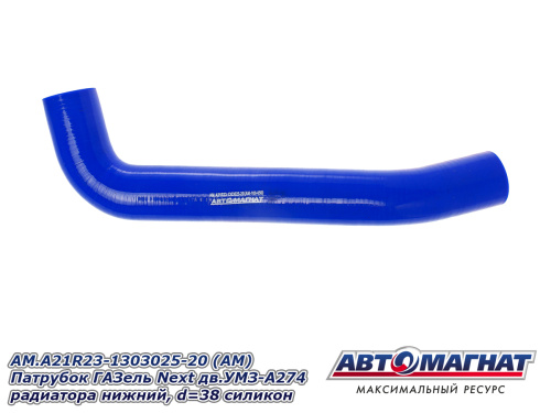 AM.A21R23-1303025-20 (АМ) Патрубок ГАЗель Next дв.УМЗ-А274 радиатора нижний, d=38 силикон 586.23 ₽