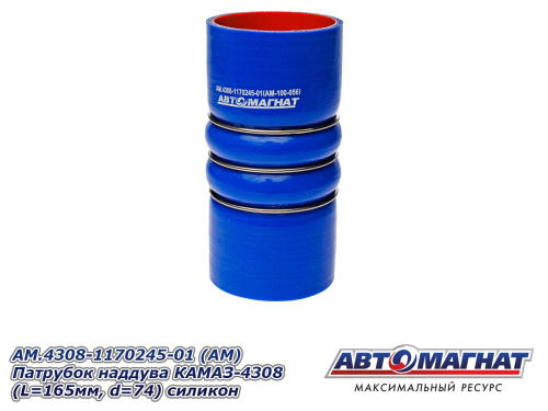 AM.4308-1170245-01 (АМ) Патрубок наддува КАМАЗ-4308 (L=165мм, d=74) силикон 483.32 ₽