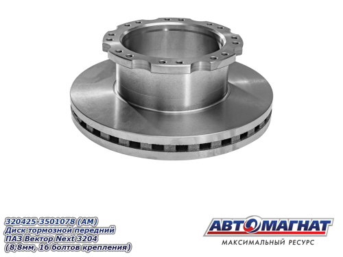 320425-3501078 (АМ) Диск тормозной передний ПАЗ Вектор Next 3204 (8,8мм, 16 болтов крепления) 7 817.89 ₽