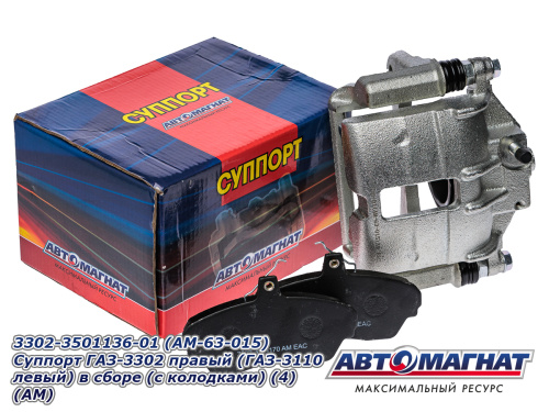 3302-3501136-01 (AM-63-015) Суппорт ГАЗ-3302 правый (ГАЗ-3110 левый) в сборе (с колодками) (4) (АМ) 3 989.88 ₽