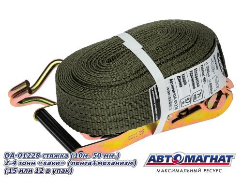 DA-01228 стяжка (10м . 50 мм..) 2-4 тонн "хаки" (лента+механизм) (15 или 12 в упак) 1 410 ₽