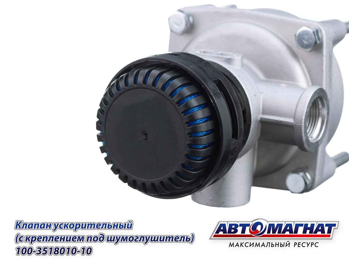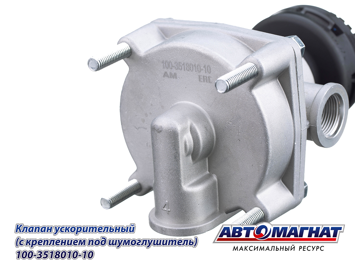 Клапан ЗИЛ, КАМАЗ, МАЗ ускорительный с креплением под шумоглушитель 100-3518010-10 АВТОМАГНАТ
