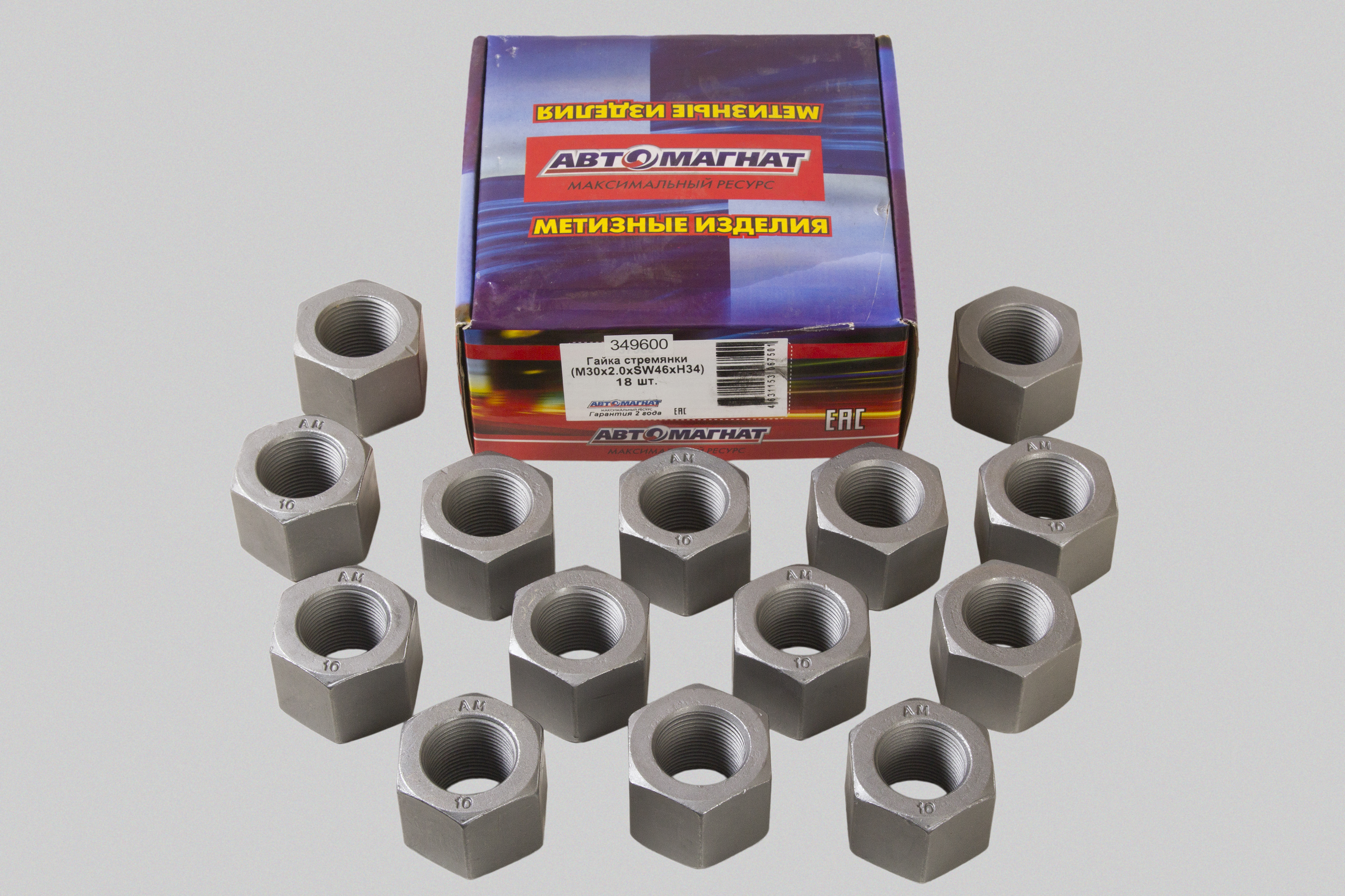 Гайка стремянки рессоры задней М30х2х35 МАЗ, КРАЗ с насечкой (тефлон) (349600) АВТОМАГНАТ