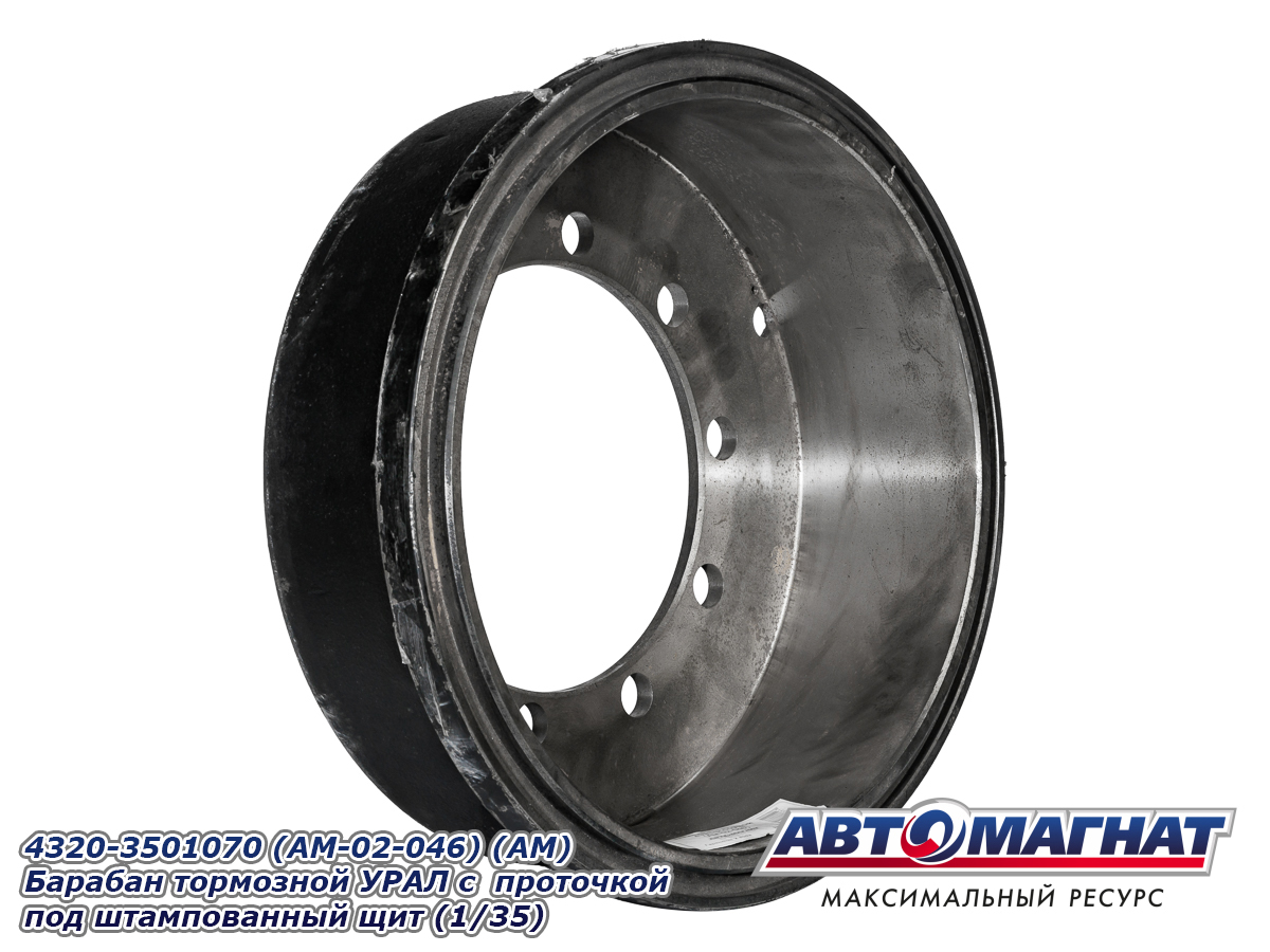 Барабан тормозной УРАЛ с проточкой под штампованный щит (35 шт. паллет) 4320-3501070 (AM-02-046) АВТОМАГНАТ