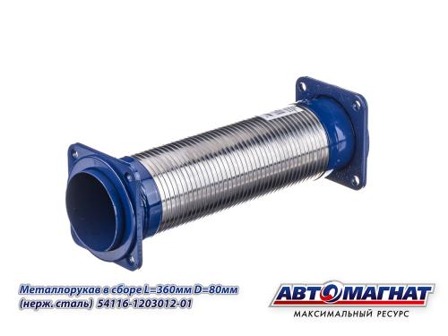 Металлорукав КАМАЗ-ЕВРО в сборе L=380мм, D=80мм (нержавеющая сталь) 54115-1203012-01 АВТОМАГНАТ