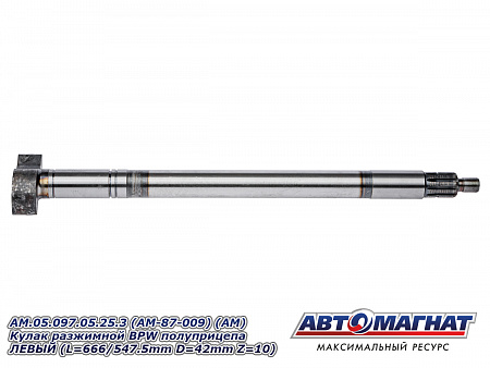 AM.05.097.05.25.3 (AM-87-009) (АМ) Кулак разжимной BPW полуприцепа ЛЕВЫЙ (L=666/547.5mm D=42mm Z=10)