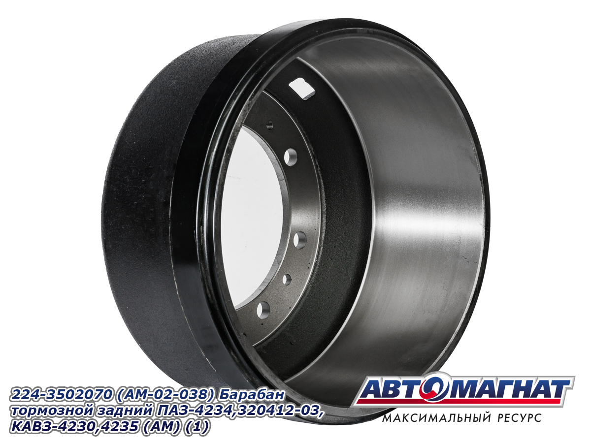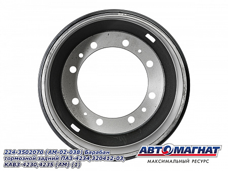 Барабан тормозной задний ПАЗ-4234,320412-03, КАВЗ-4230,4235 с канашским мостом (8 отверстий) 224-3502070 (AM-02-038) АВТОМАГНАТ
