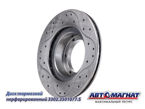 Диск тормозной передний ГАЗ 3302, 2705, 3221 ПЕРФОРИРОВАННЫЙ (ступичный диаметр 104 мм) 3302-3501077-S (AM-12-033) АВТОМАГНАТ