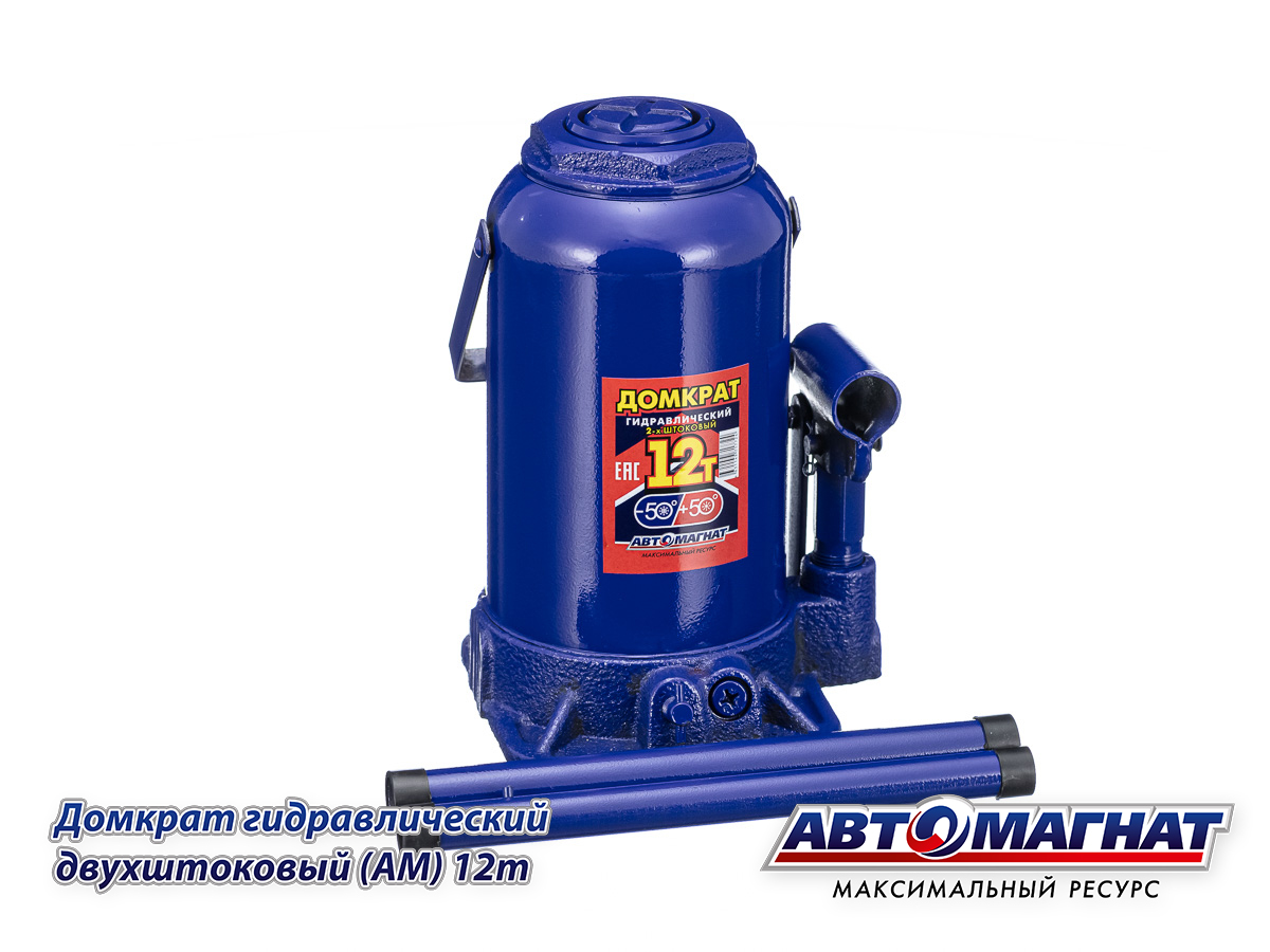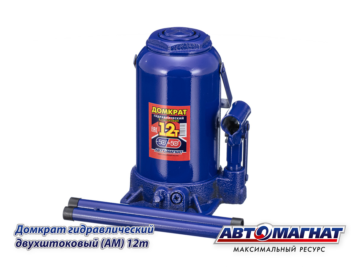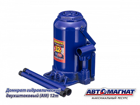 Домкрат гидравлический бутылочный 12т. двухштоковый (Мин. 230мм, Мах: 565мм) с предохранительным клапаном АВТОМАГНАТ