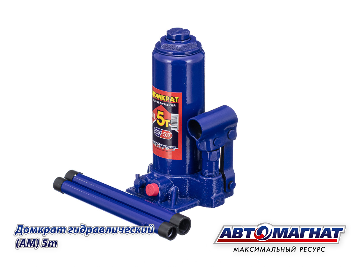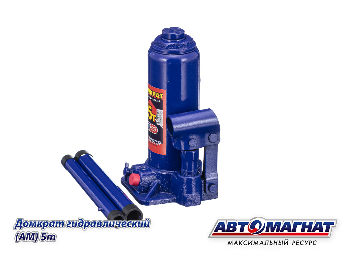 Домкрат гидравлический бутылочный 5т. (Мин.195мм, Мах: 380мм) с предохранительным клапаном АВТОМАГНАТ