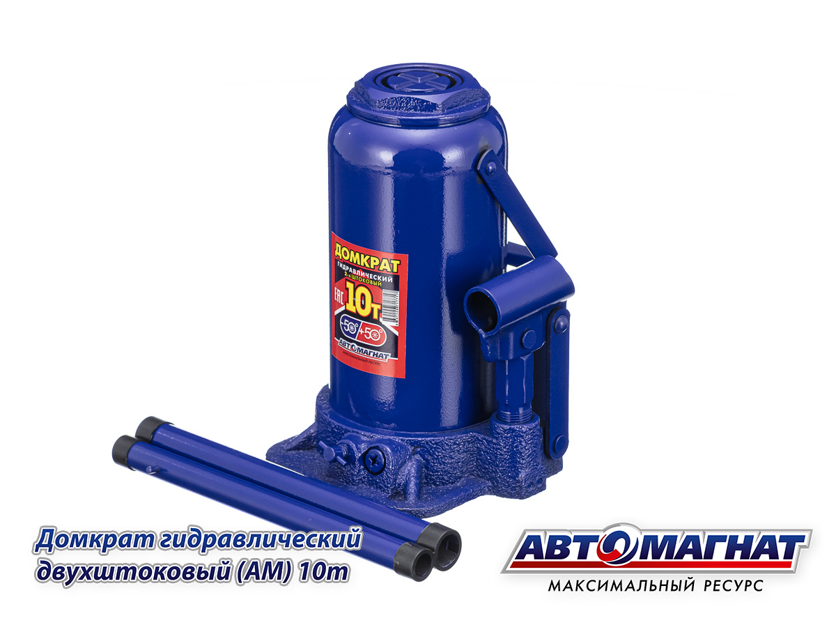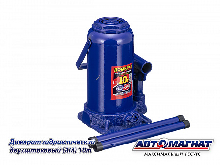 Домкрат гидравлический бутылочный 10т. двухштоковый (Мин.225мм, Мах: 550мм) с предохранительным клапаном АВТОМАГНАТ