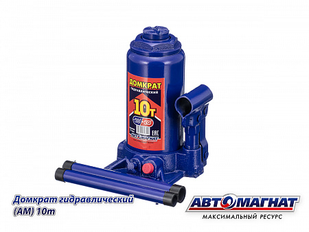 Домкрат гидравлический бутылочный 10т. (Мин.200мм, Мах: 385мм) с предохранительным клапаном АВТОМАГНАТ