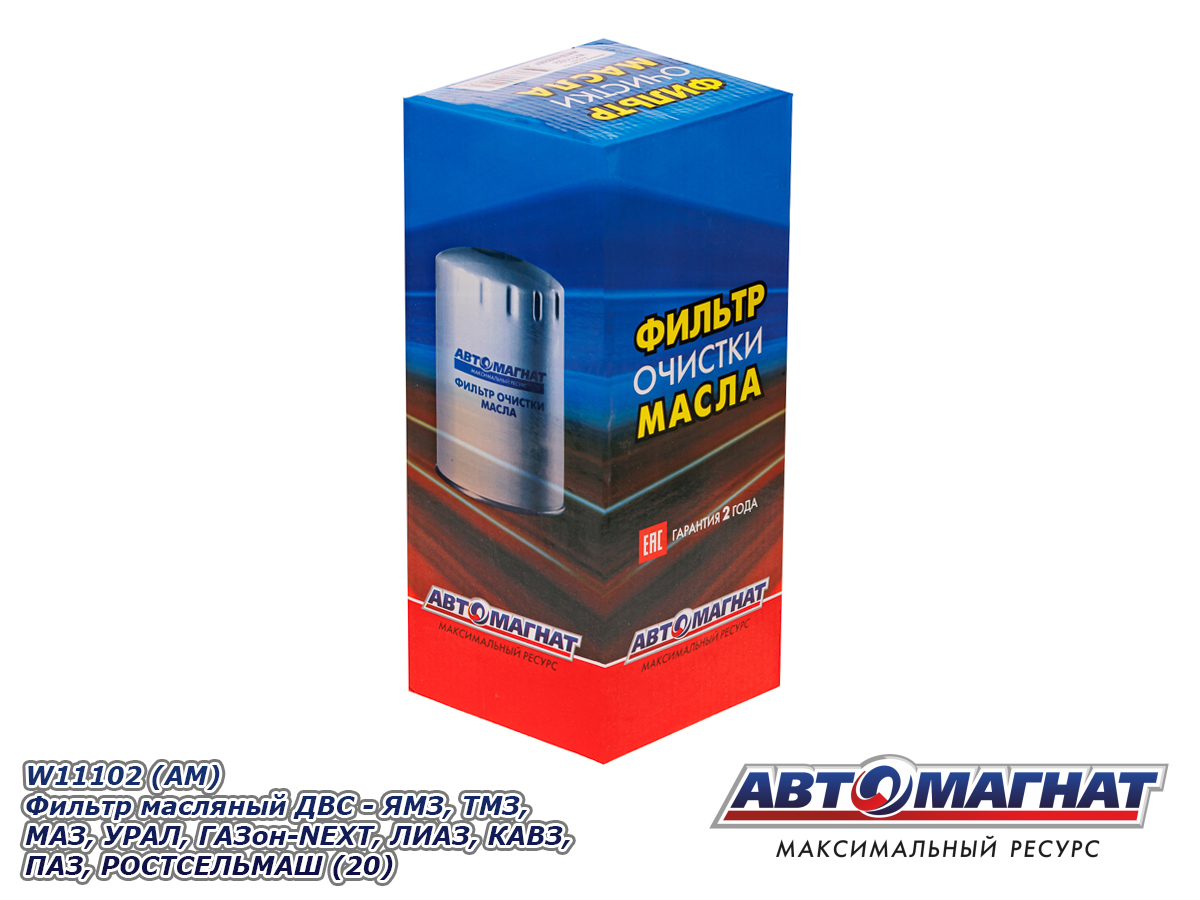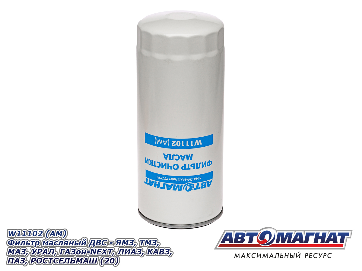 W11102 (АМ) Фильтр масляный ДВС - ЯМЗ, ТМЗ, МАЗ, УРАЛ, ГАЗон-NEXT, ЛИАЗ, КАВЗ, ПАЗ, РОСТСЕЛЬМАШ (20)