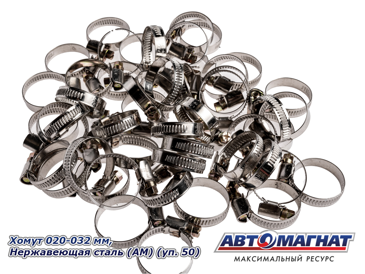 Хомут 020-032 мм, Нержавеющая сталь (АМ), (уп.50 шт.)