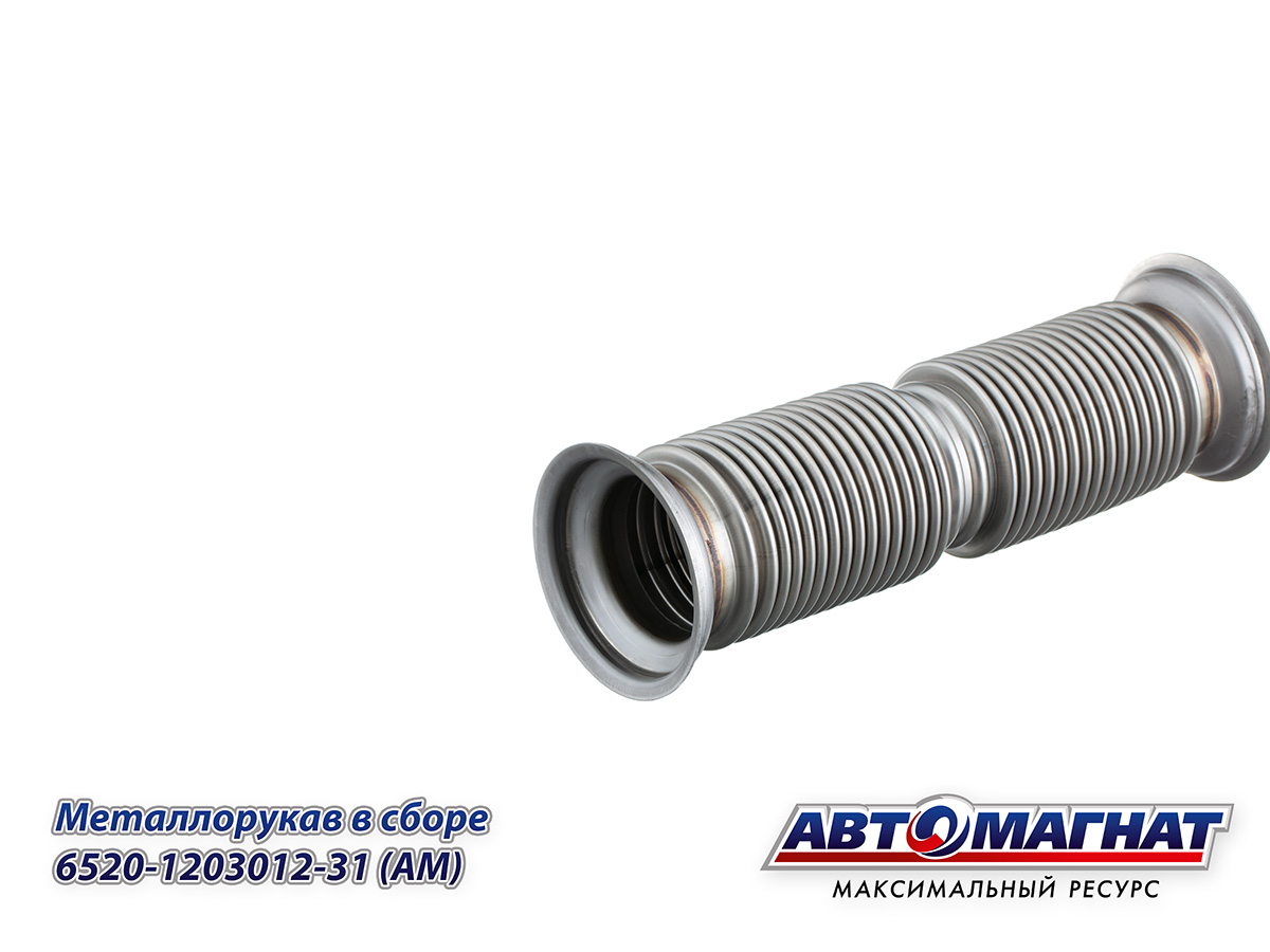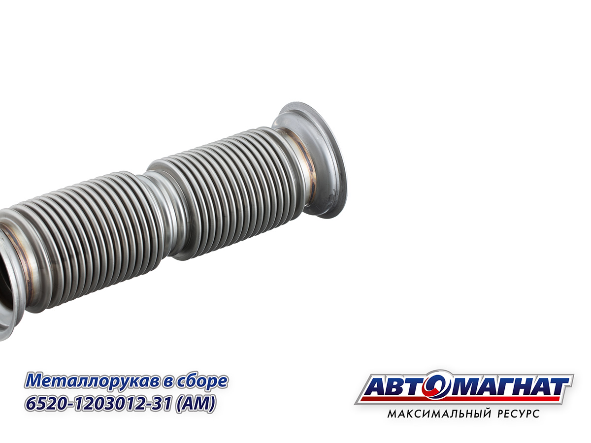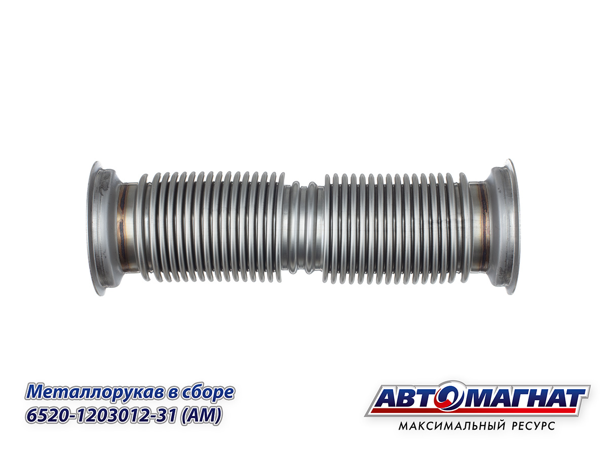 Металлорукав КАМАЗ 6520 ЕВРО-4 (Сильфон) в сборе L=360 мм, D=80 мм (гофра, нержавеющая сталь 0,35 мм) (под хомут) 6520-1203012-31 АВТОМАГНАТ