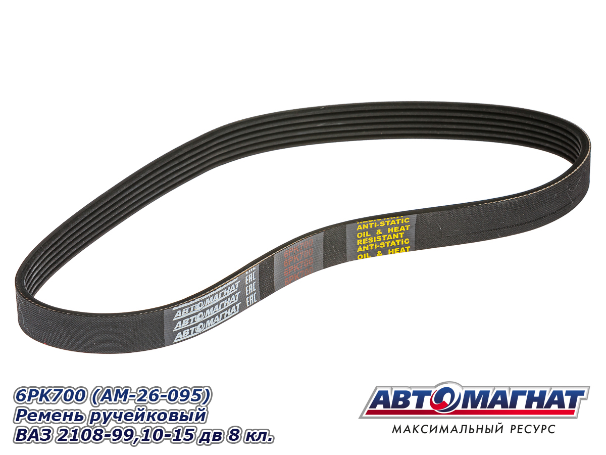 Ремень поликлиновой (ручейковый) ВАЗ-2108-99, 2110-2115 8V 6PK700 АВТОМАГНАТ