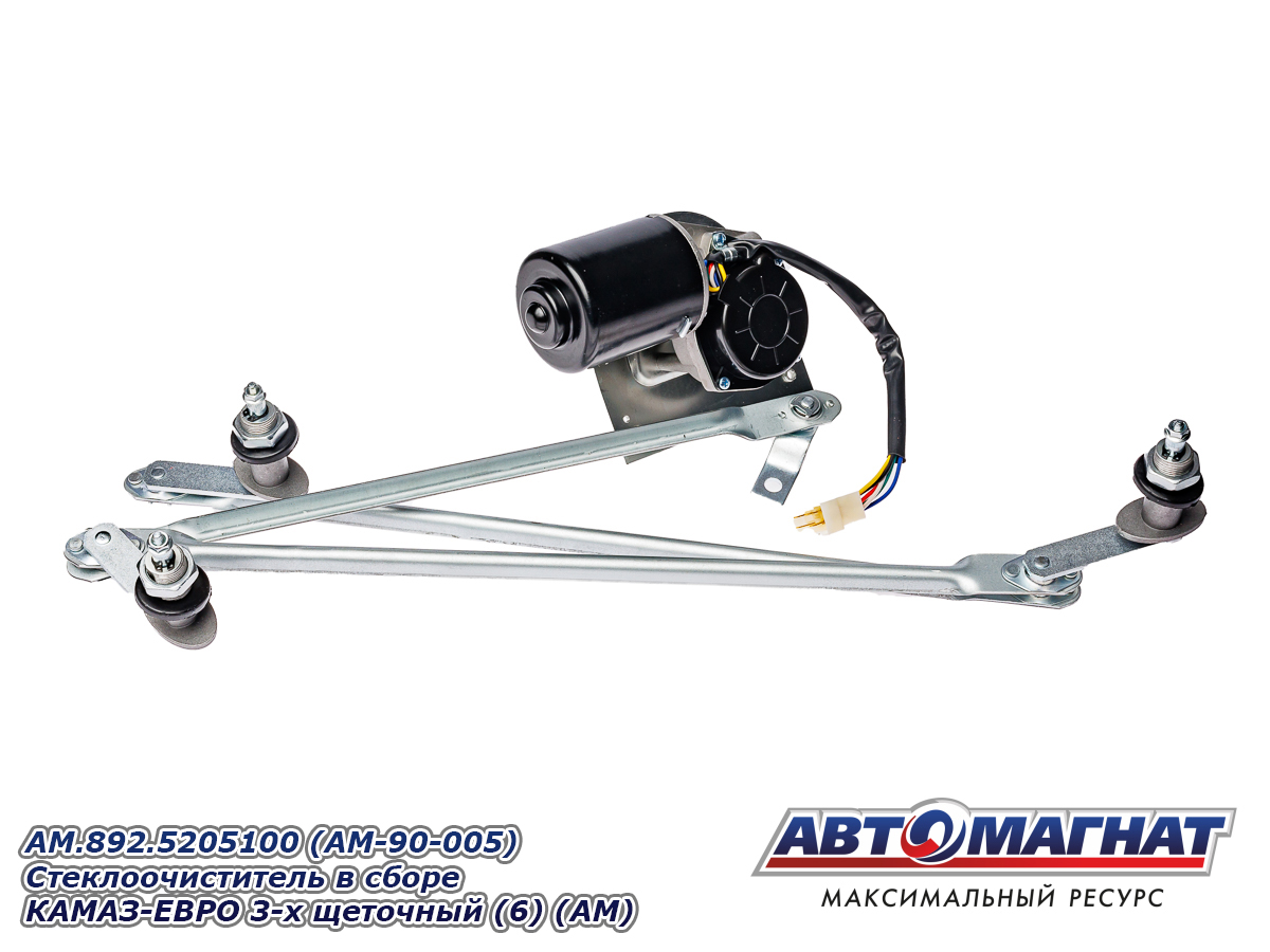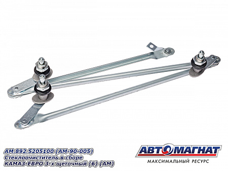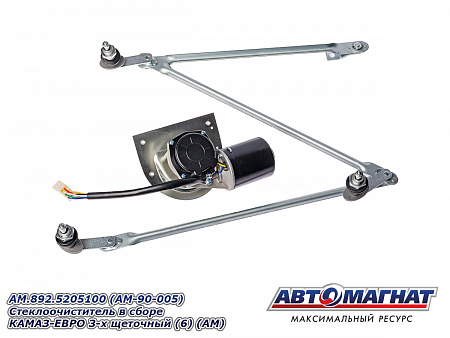Стеклоочиститель в сборе КАМАЗ-ЕВРО 3-х щеточный (состоит из: мотор стеклоочистителя AM.351.5205200 + тяга стеклоочистителя 272.5205500) AM.892.5205100 (AM-90-005) АВТОМАГНАТ