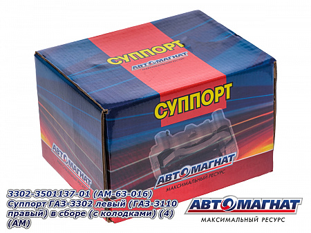 Суппорт ГАЗ-3302 левый (ГАЗ-3110 правый) в сборе (В КОМПЛЕКТЕ С КОЛОДКАМИ) 3302-3501137-01 (AM-63-016) АВТОМАГНАТ