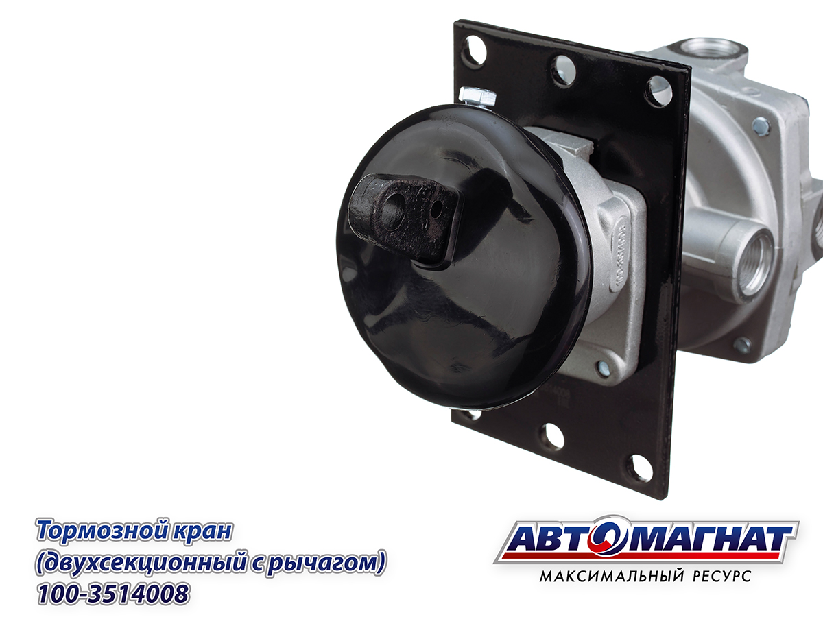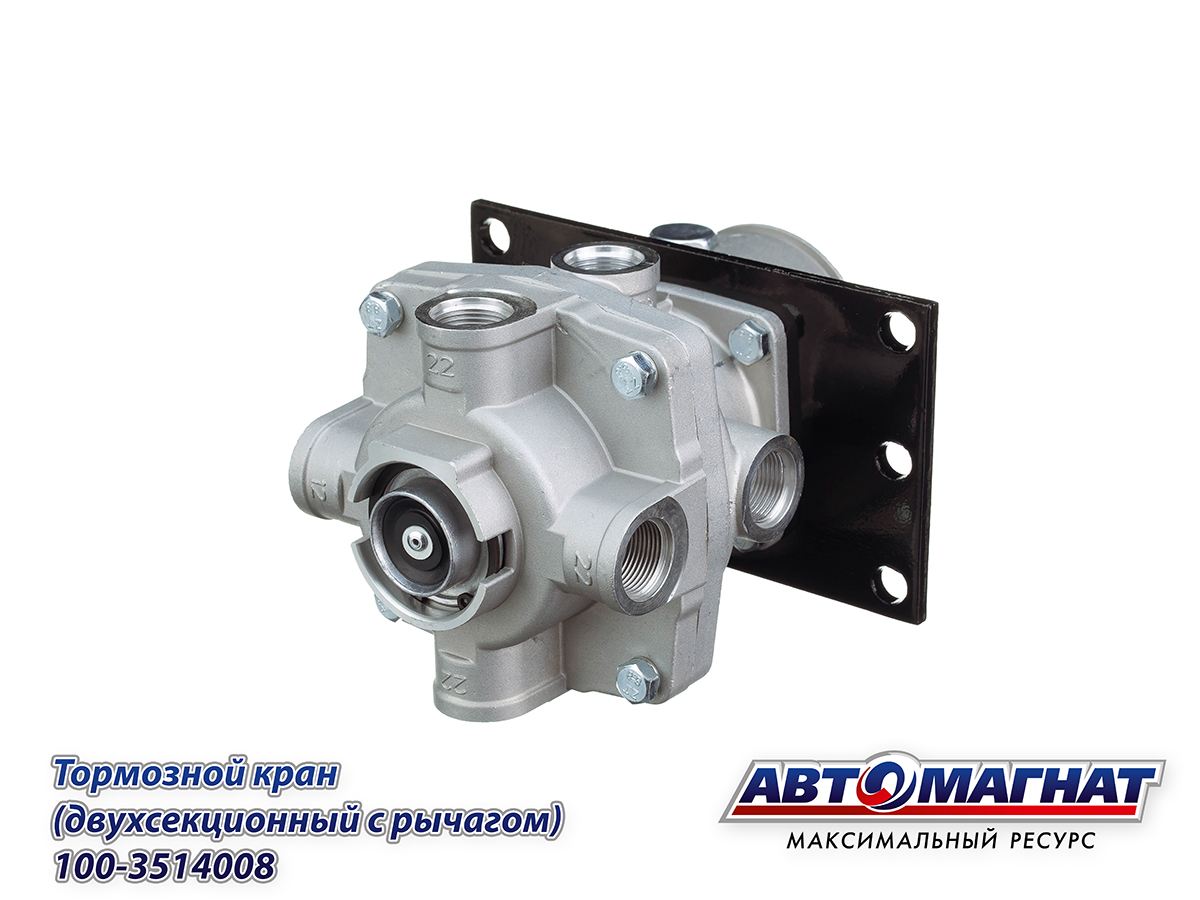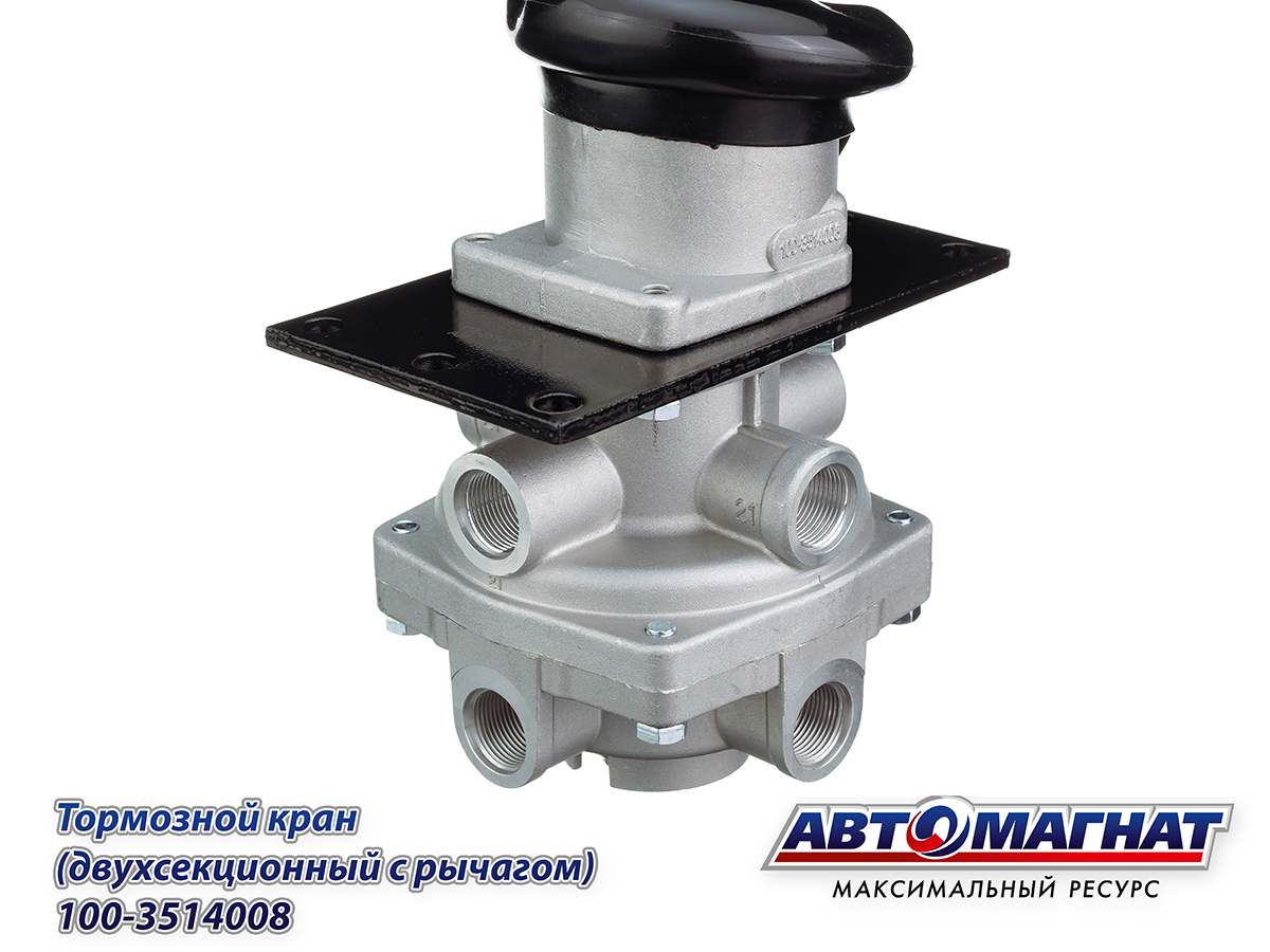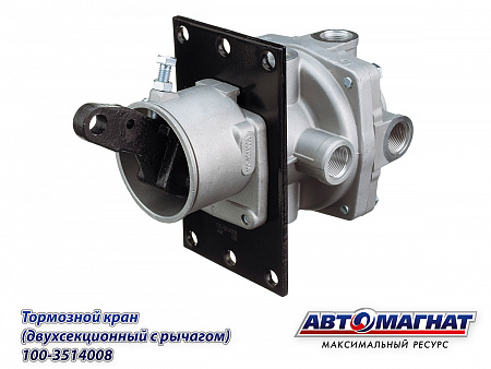 Кран ЗИЛ, КАМАЗ, МАЗ тормозной 2-х секционный с рычагом 100-3514008 АВТОМАГНАТ