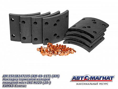 AM.3501B247105 (AM-69-117) (АМ) Накладка тормозной колодки передний мост JAC N120 (20-) КАМАЗ Компас