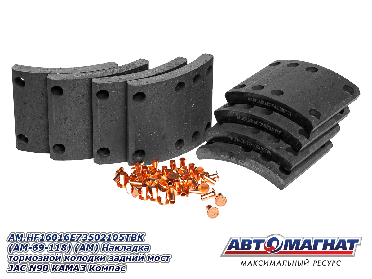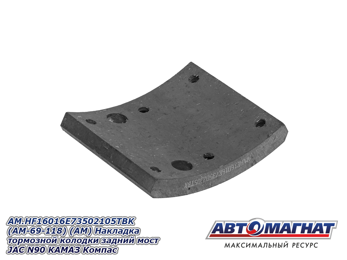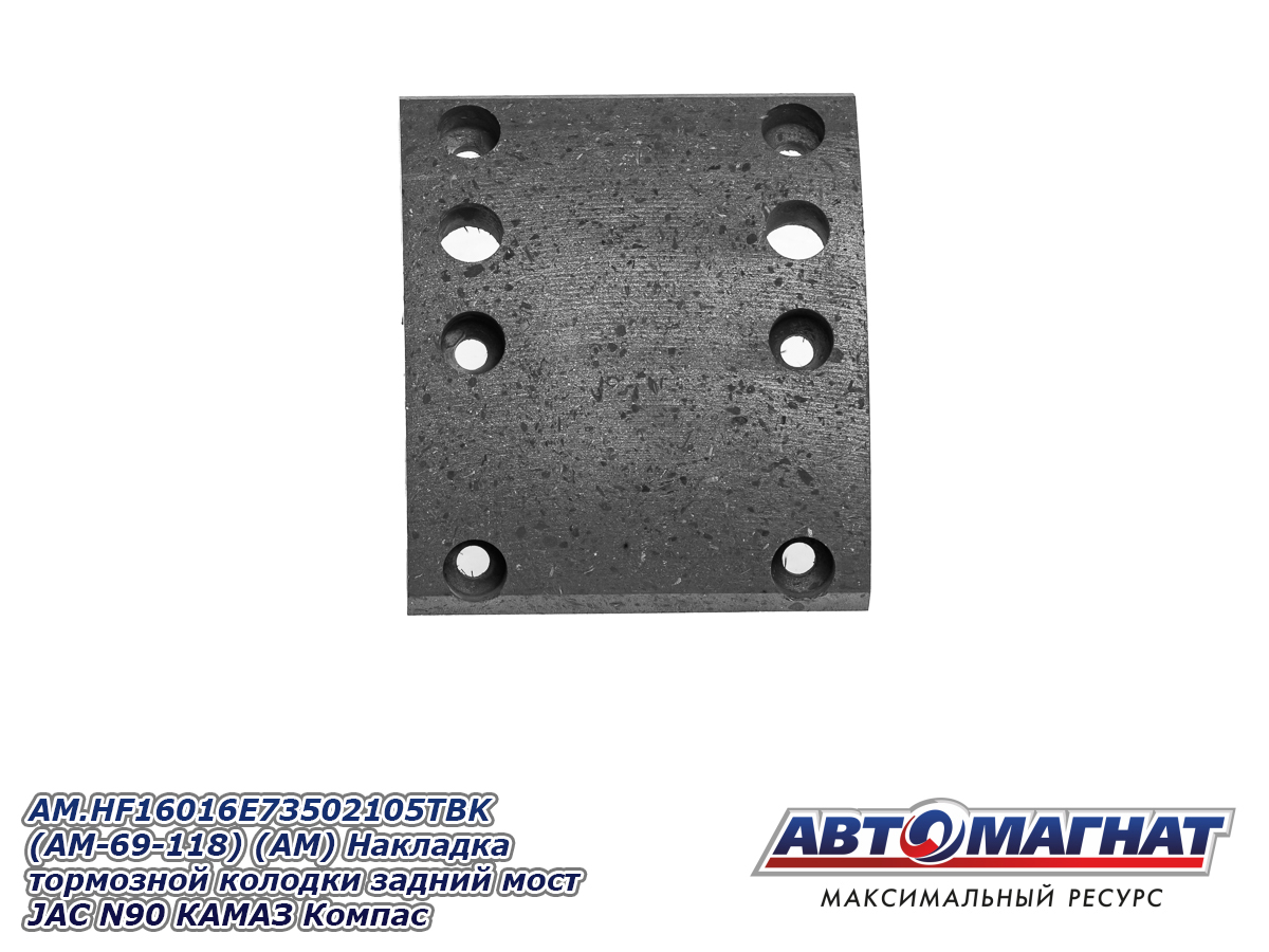 AM.HF16016E73502105TBK (AM-69-118) (АМ) Накладка тормозной колодки задний мост JAC N90 КАМАЗ Компас