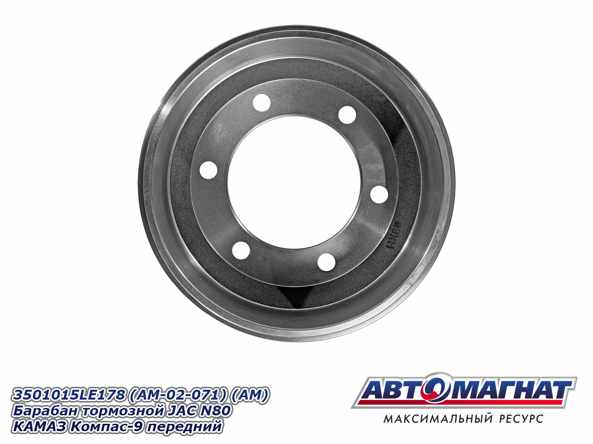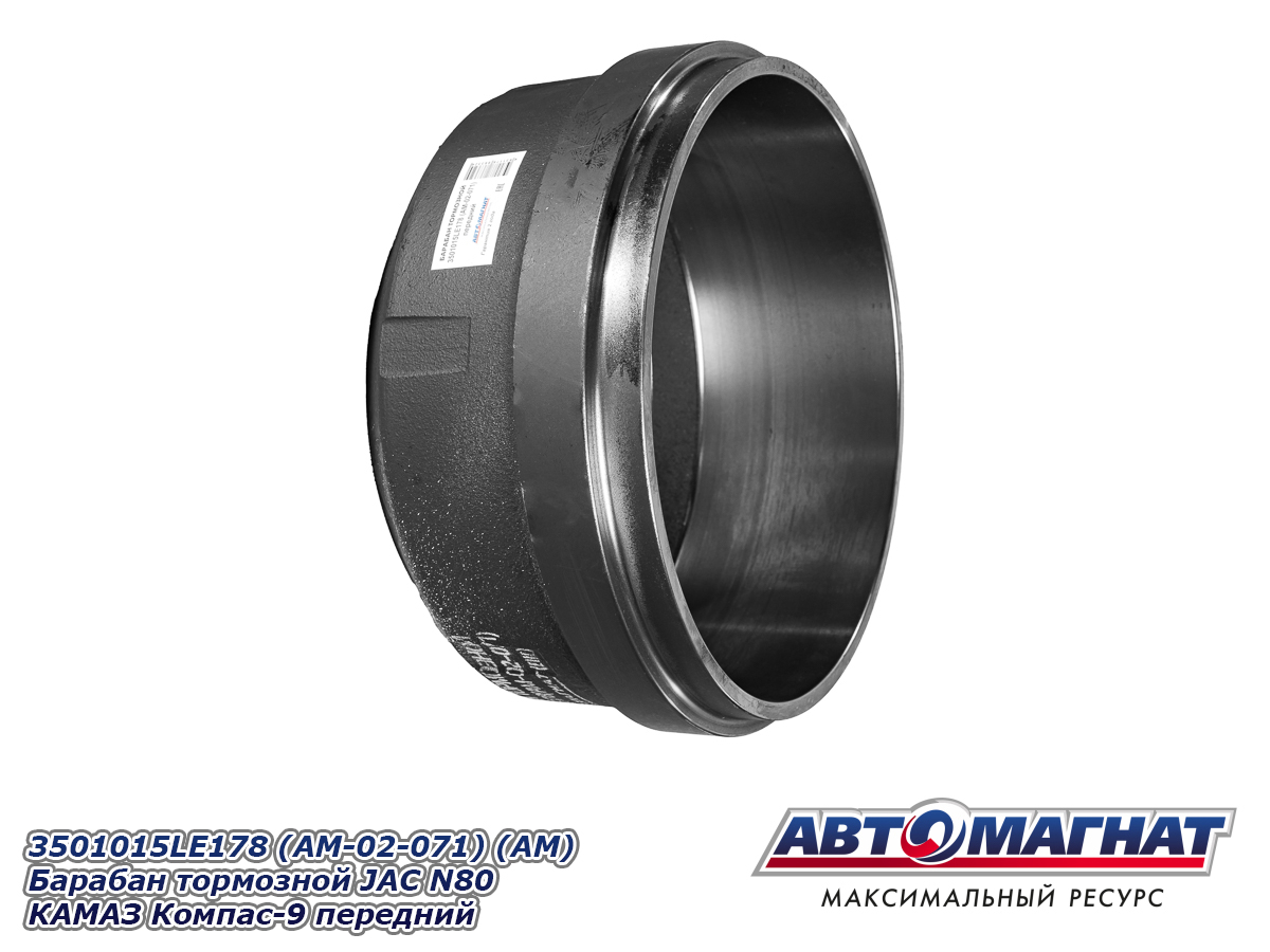 Барабан тормозной JAC N80 КАМАЗ Компас-9 передний 3501015LE178 (AM-02-071) АВТОМАГНАТ
